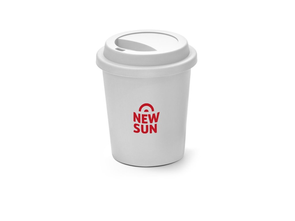 Jednostěnný cestovní hrnek z PP. Lze mýt v myčce a používat v mikrovlnné troubě. Objem až 350 ml. Ø90 x 104 mm