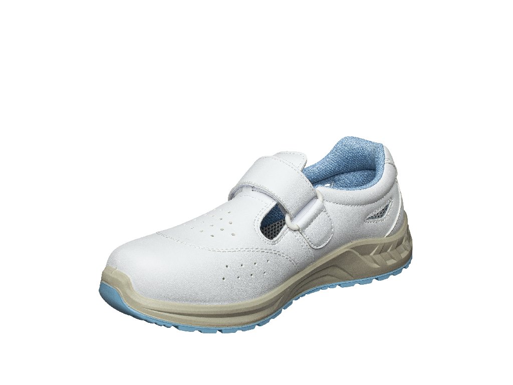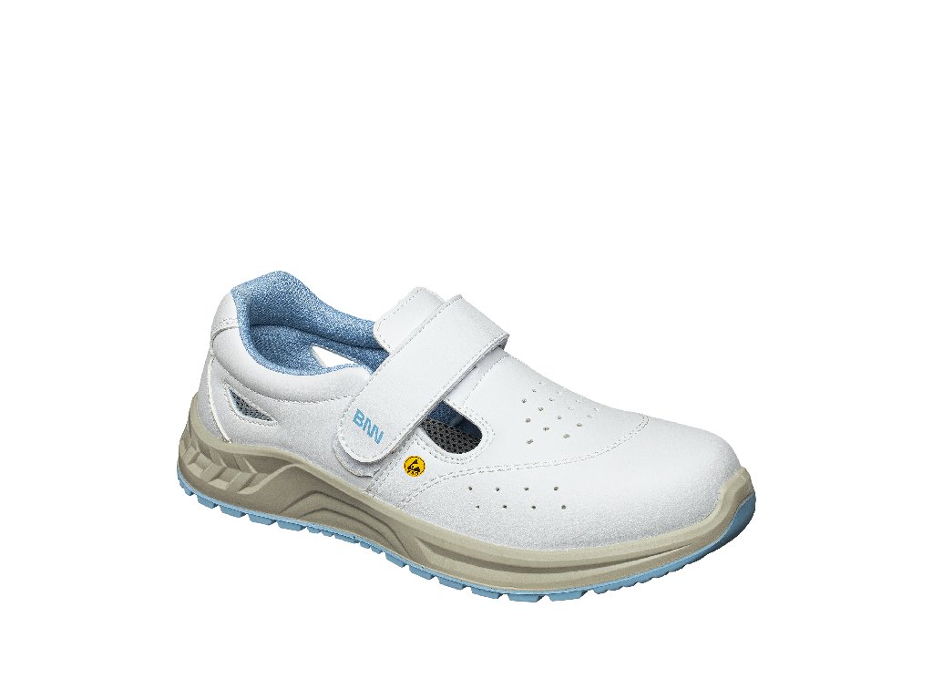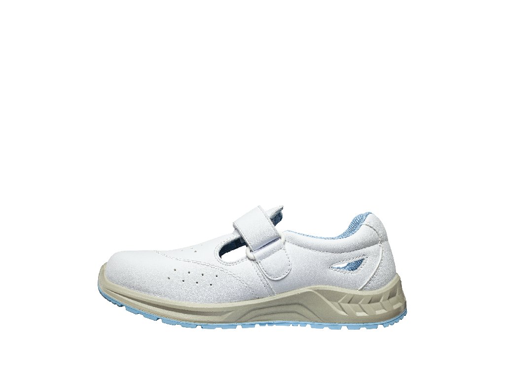 Bílá, dobře omyvatelná, antistatická obuv s ESD vlastnostmi.