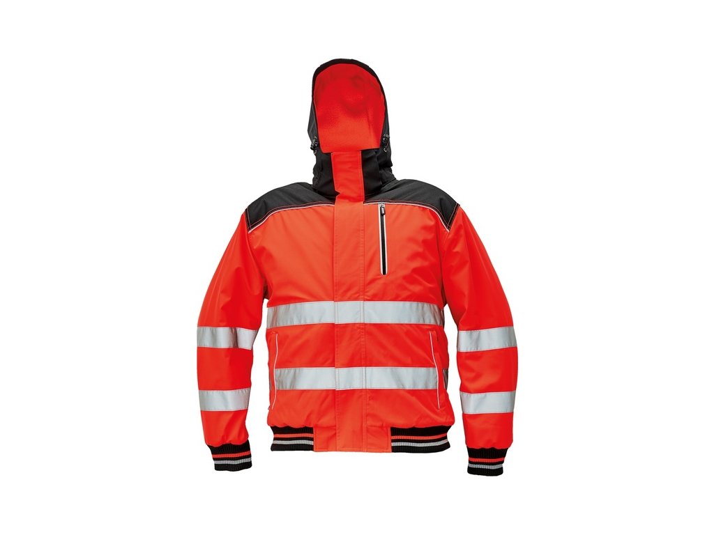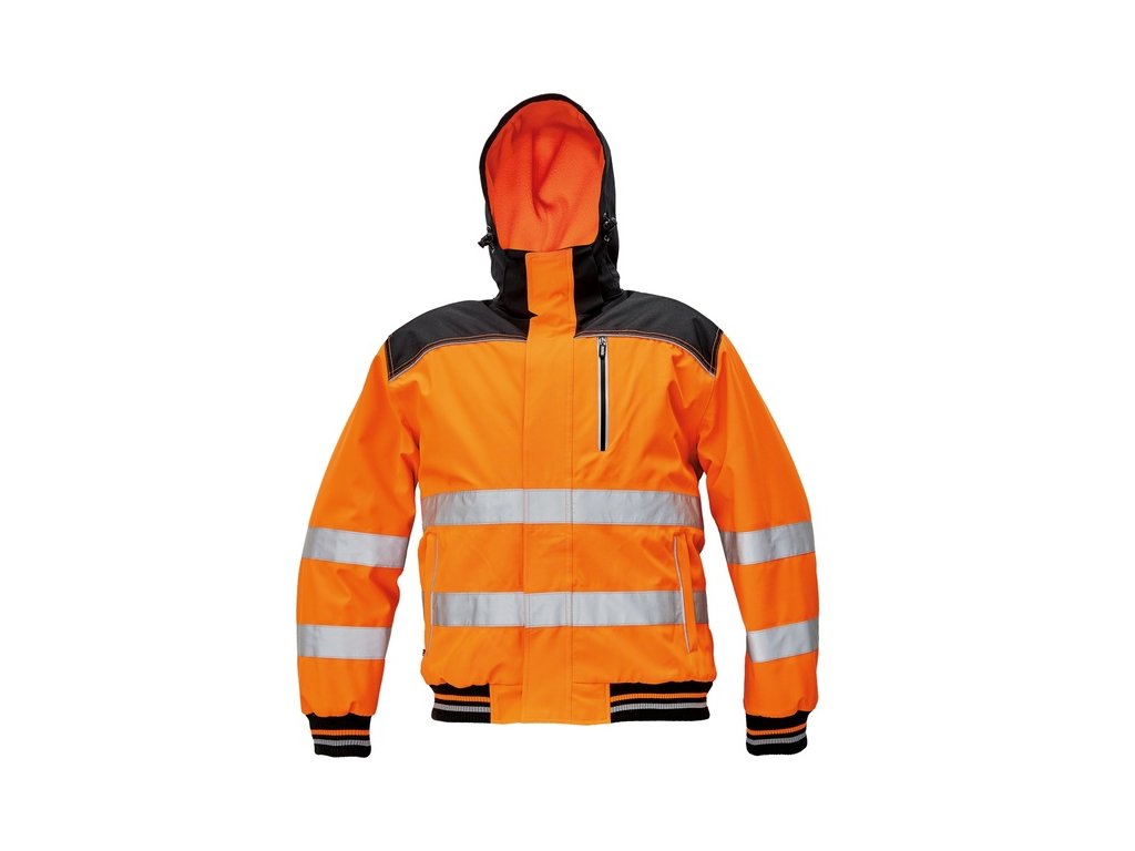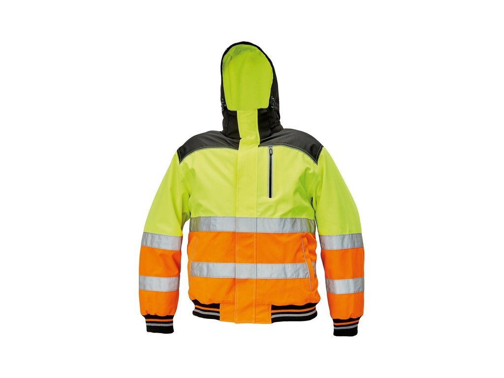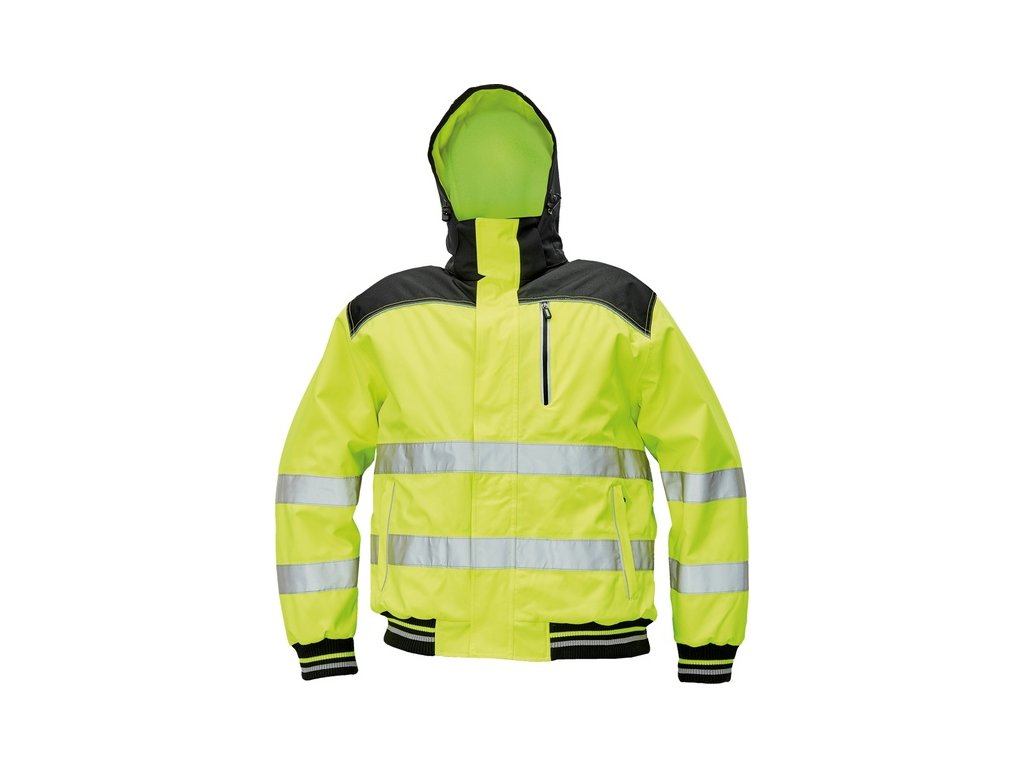 - nepromokavá, větruodolná pánská zateplená zimní pilotka v hi-vis provedení s odnímatelnou kapucí