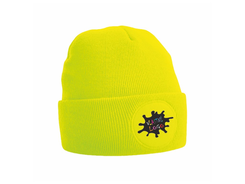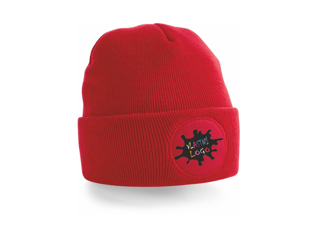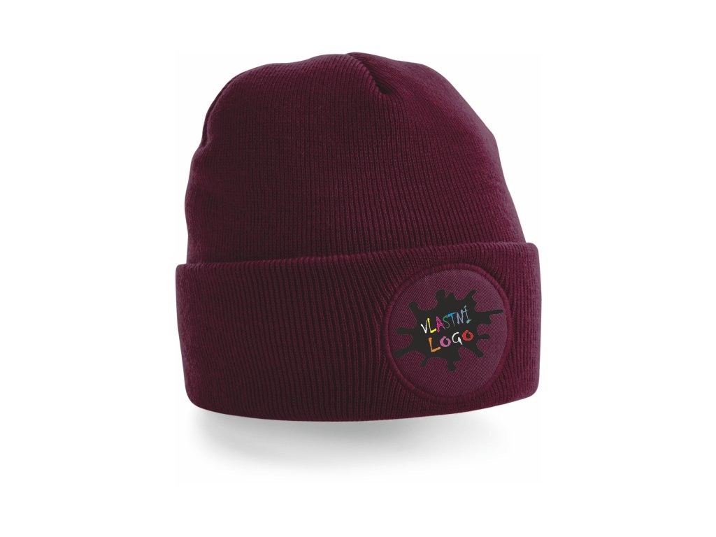 Zimní čepice s kulatou bavlněnou nášivkou k vlastnímu potisku ideální pro zimní sezónu.